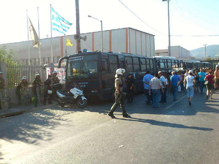 6 κλούβες των ΜΑΤ έχουν αποκλείσει την πύλη του εργοστασίου.